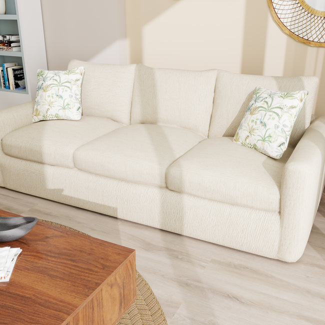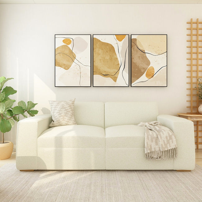 أريكة بروم ثلاثية المقاعد - كرسي استرخاء عصري من القماش (بيج وبني باهت)