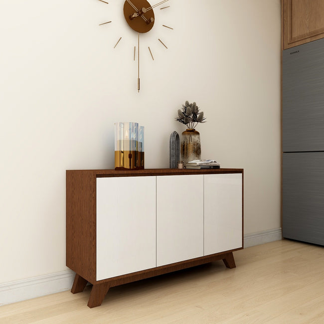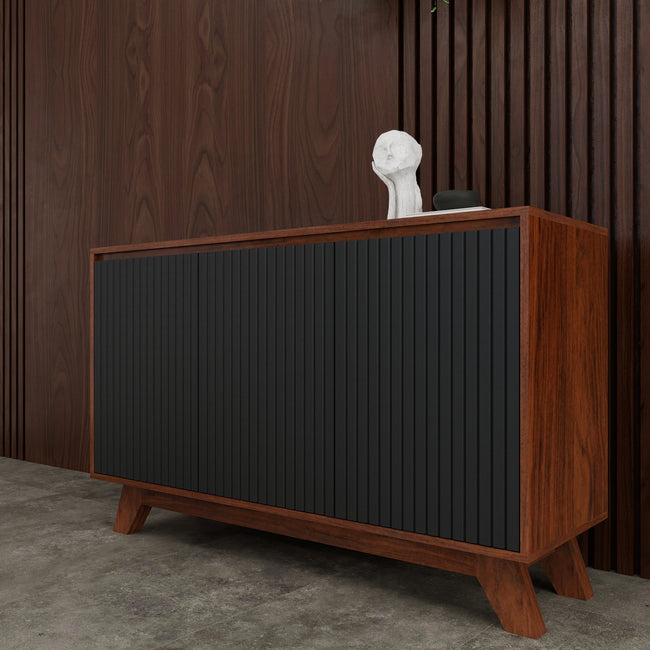 خزانة جانبية ستراتا بلون الجوز والأسود - خزانة تخزين عصرية من الخشب الصلب