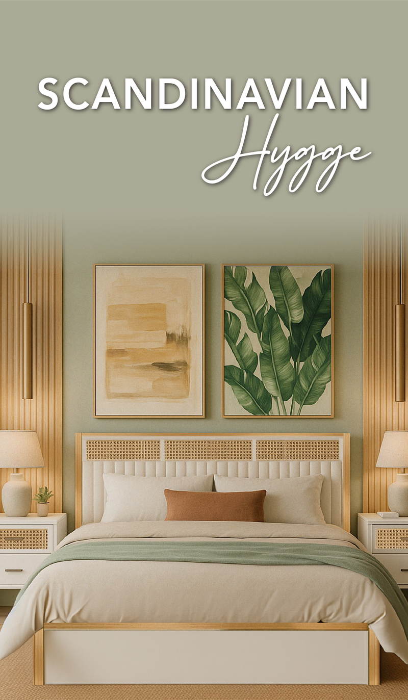 Scandinavian Hygge centers around comfort, coziness, and a sense of well-being. It embraces simplicity and functionality while encouraging calm, peaceful surroundings. This style aims to make everyday living feel relaxed and emotionally warm.