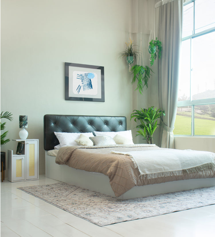 Elevate your bedroom's style and functionality with our premium upholstery headboard, expertly crafted in Malaysia to meet rigorous European standards. This queen-sized bed boasts: